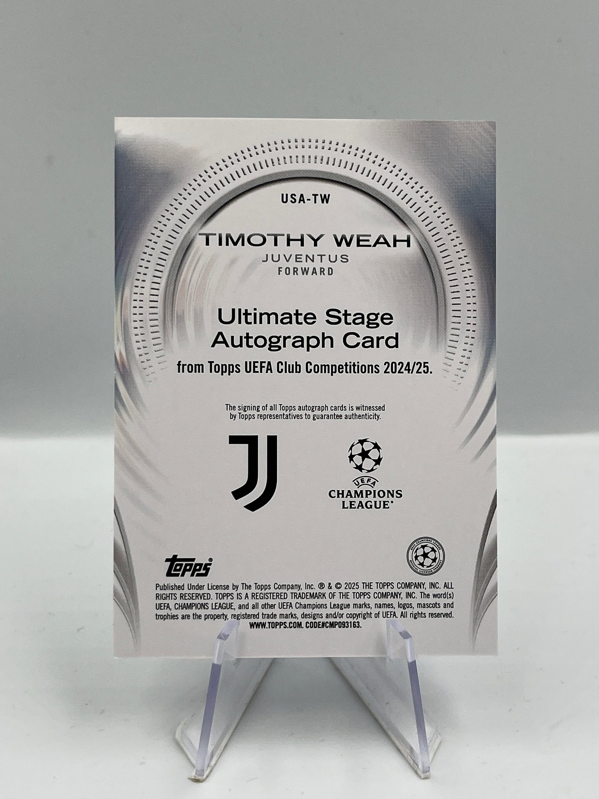 Topps UCC 24/25 Timothy Weah Juventus Ultimate Stage Auto #USA-TW
